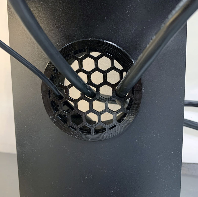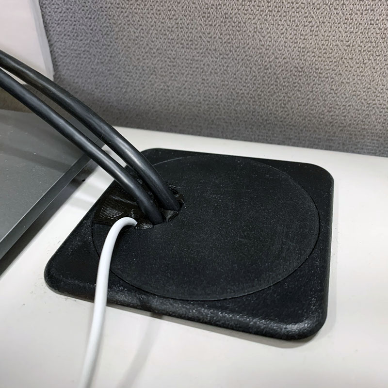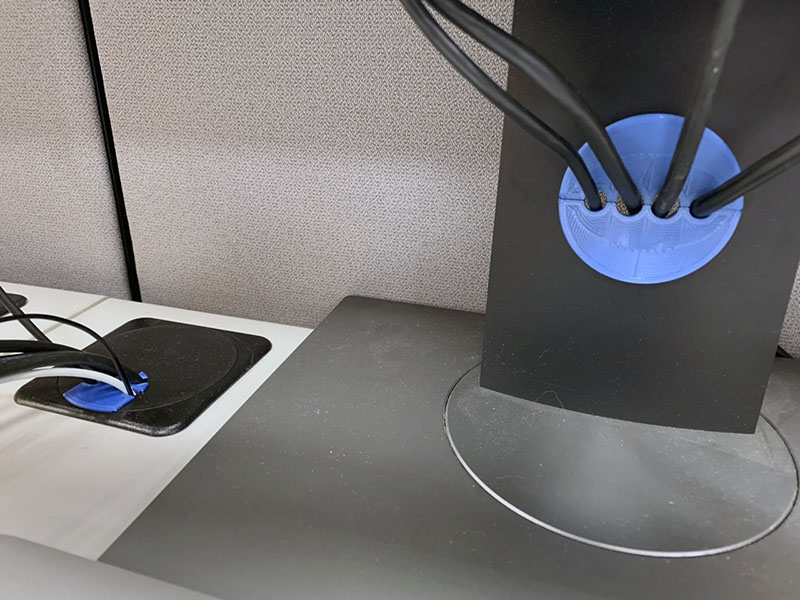 Recently I posted this update about designing and printing a cable organizer for my desk at work. It has done wonders for making my cables look more organized, as well as keeping them firmly in place. While this was a great start and prevents any need to recover fallen cables from under the desk the need for proper cable guidance was far from finished. I still had another desk opening and 3 monitor pass-throughs that were in need of some attention.