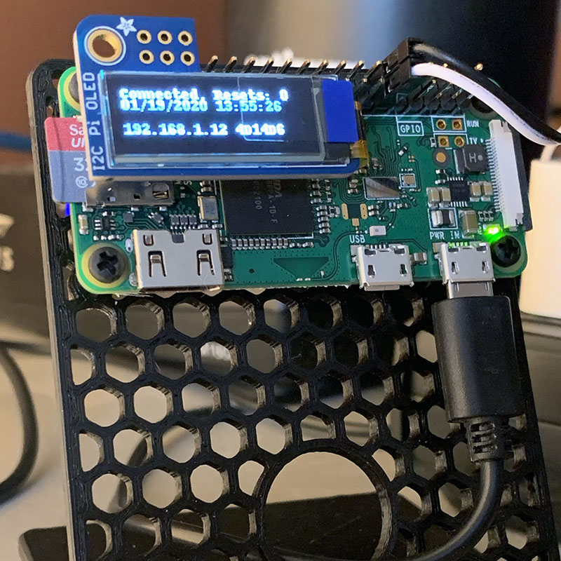 This project really started when I found a controllable four outlet power relay module on Adafruit's website. It seemed like a reasonable way to control outlets from a microcontroller or microcomputer, providing one outlet with constant power, one that is normally open and two outlets that are normally closed. Since I want the project to control both my router and my modem, I will be using the two normally closed outlets unless I rewire the module sometime in the future. While I originally intended to attach the module's control input to a Raspberry Pi 3, I have been so impressed with the Raspberry Pi Zero W's capabilities that I switched to the smaller board. Equipped with an Adafruit Pi OLED screen I can display connection status messages directly on the screen. Although the Pi Zero usually comes without the GPIO headers (rows of pins at the top), the one I purchased from Adafruit already had the pins soldered on. Since the header is made up of 40 pins, this is definitely helpful if you know you have a project that is going to use the pins.