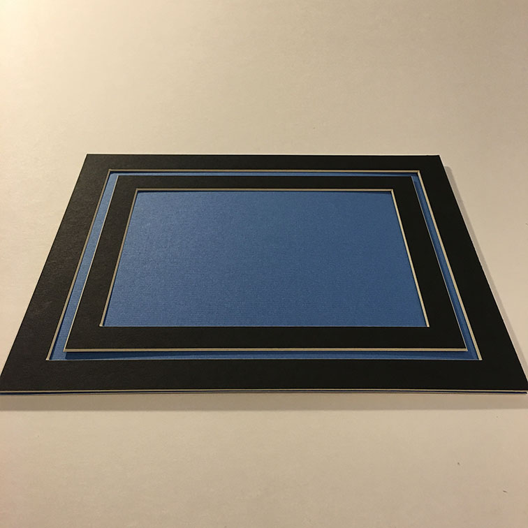 For this particular project, I decided that I wanted to do something a little more custom than a single mat. Double mats can be nice but seemed like overkill for the size of the photos that I was using. Since my girlfriend usually has a limited amount of space and I wanted to do more than one I wanted the frame and mat to fit in an 8" by 10" frame. Using a ruler and a sheet of printer paper I established my 8" by 10" template and arranged the 5" x 7" photo space in the center. Working with the dimensions I came up with the idea to do a color-reveal border. Rather than stepping directly off the photo, there is a band of black mat, then the color-reveal, and finishes with a border of black matboard. Using the mat cutter to establish the beveled edge increases the overall appearance of depth and provides a nice transition between the pieces.